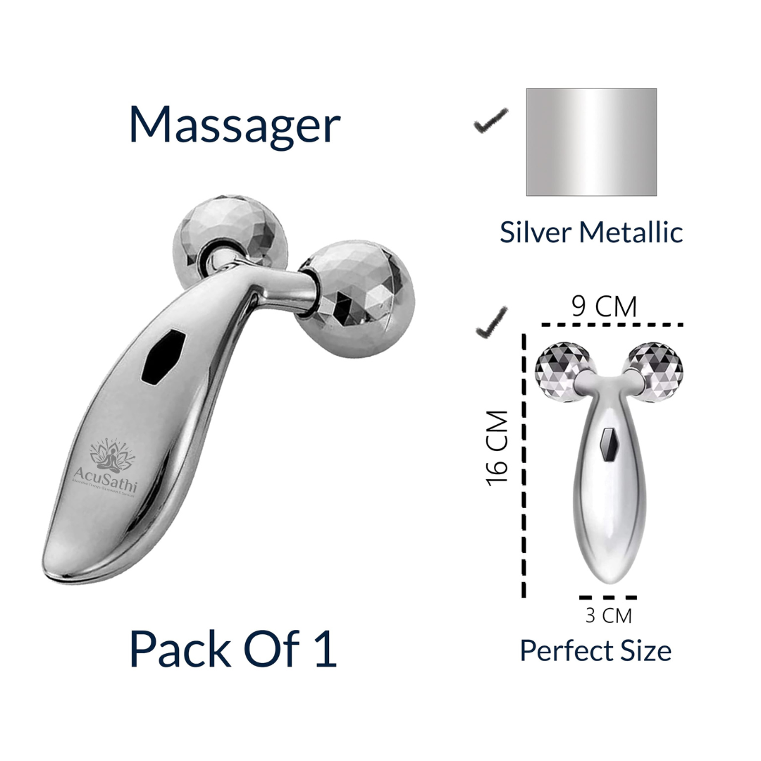 AcuSathi 3D Face Sculpting Roller Massager is a premium manual facial massage tool designed to lift, tone, and relax facial muscles. Its Y-shaped dual rollers stimulate blood circulation, support lymphatic drainage, and help reduce facial puffiness with regular use.