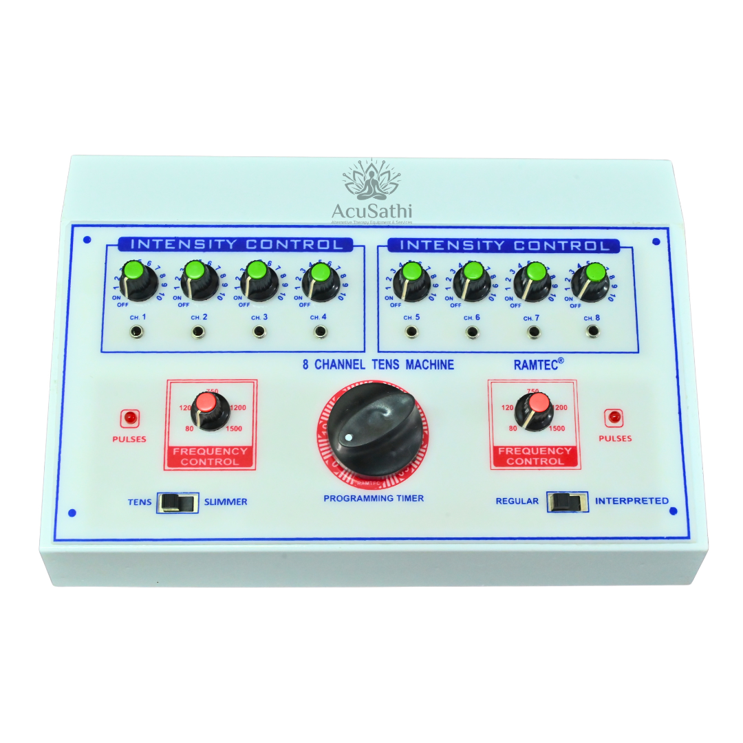 AcuSathi 8-Channel TENS + Continuous Slimming Stimulator is a professional-grade electrotherapy machine designed for pain relief, muscle toning, and body slimming therapy. With multi-channel output and advanced frequency control, it delivers effective physiotherapy and aesthetic stimulation in one system.
