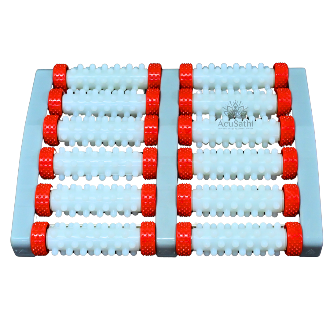 AcuSathi FlexiRoll Foot Massage Mat is a dual-panel acupressure roller system specially designed to provide deep stimulation to the feet. With multiple textured rollers, durable construction, and reflexology-based mapping, it helps relieve foot pain, improve blood circulation, reduce stress and activate full-body wellness naturally.
