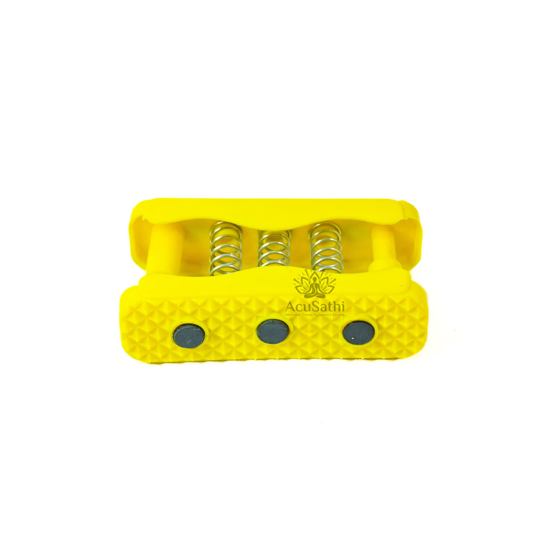 AcuSathi Magnetic Pocket Acupressure Exerciser is a compact hand therapy tool combining spring resistance with embedded magnets. Designed for finger strength, grip improvement, and acupressure stimulation, it is lightweight, portable, and ideal for daily hand exercise anytime, anywhere.